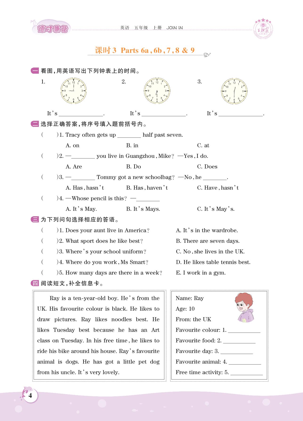2021上册五年级英语剑桥版 Starter unit—课时3 Parts 6a,6b,7,8 & 9