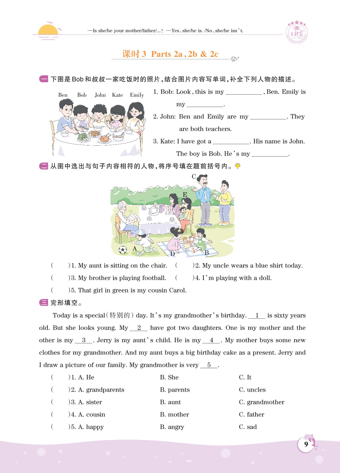 2021上册五年级英语剑桥版 Unit 1 —课时3 Parts 2a,2b & 2c