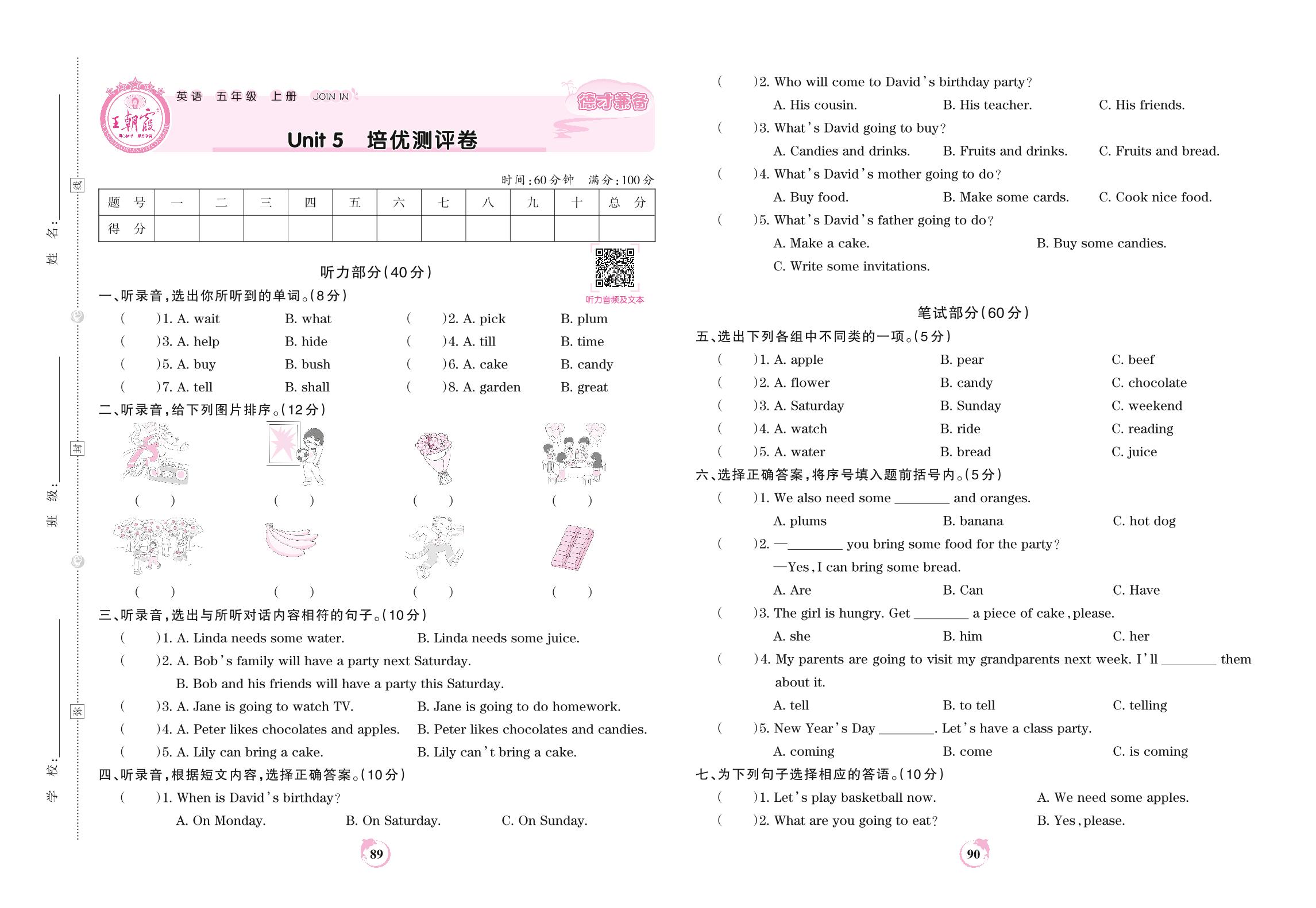 2021上册五年级英语剑桥版 Unit 5 培优测评卷