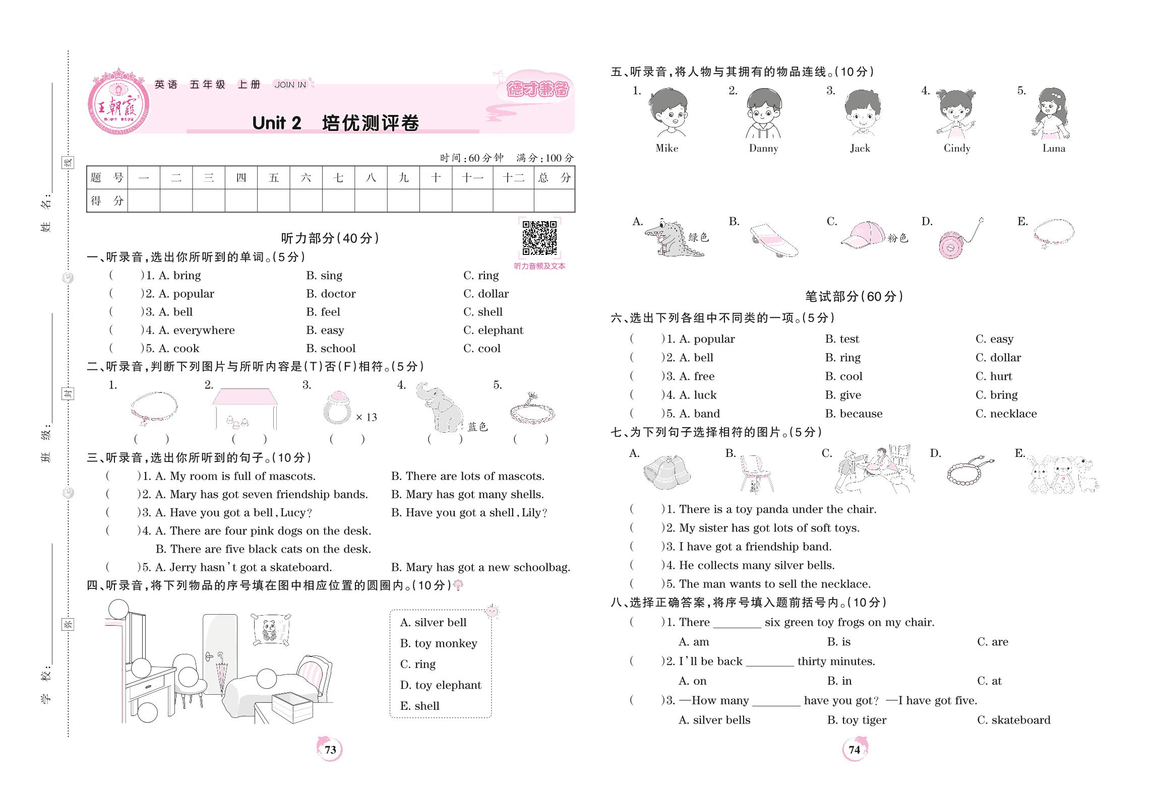 五年级英语剑桥版上册单元卷
