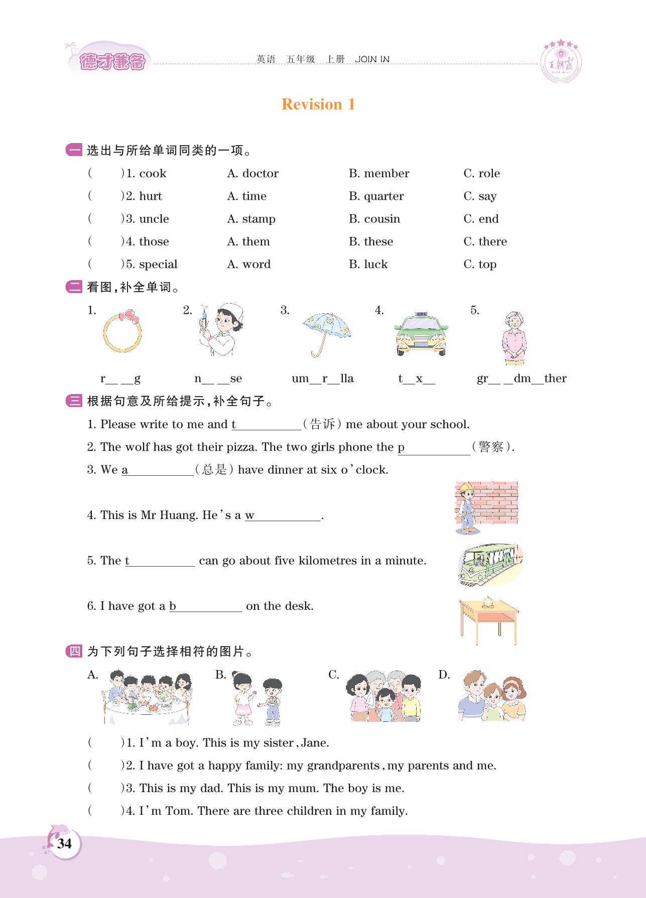2021上册五年级英语剑桥版 Revision 1