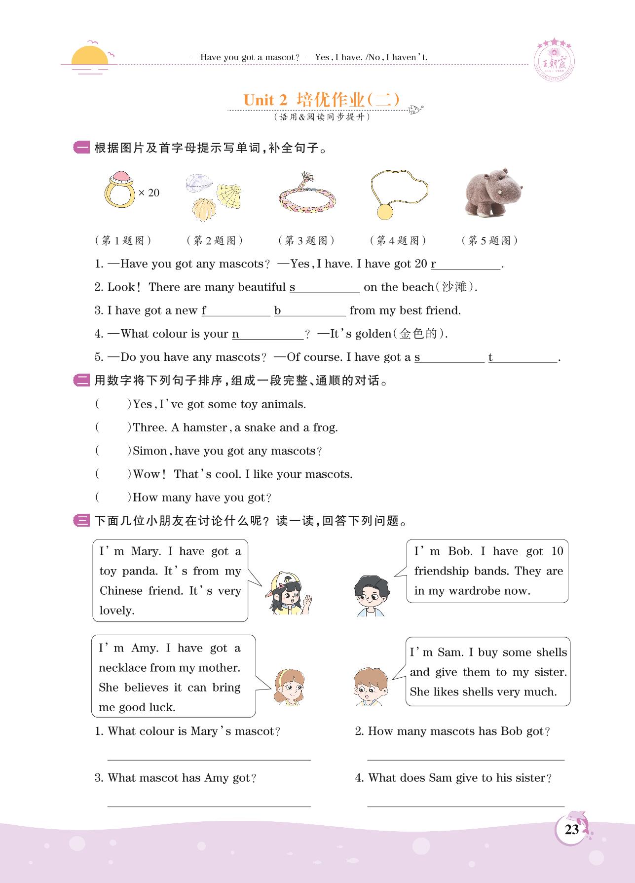 2021上册五年级英语剑桥版 Unit 2 培优作业(二)