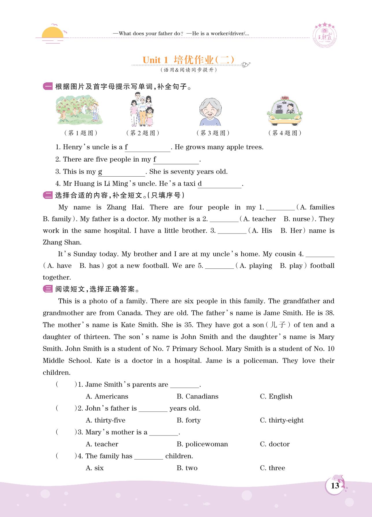 2021上册五年级英语剑桥版 Unit 1 培优作业(二)