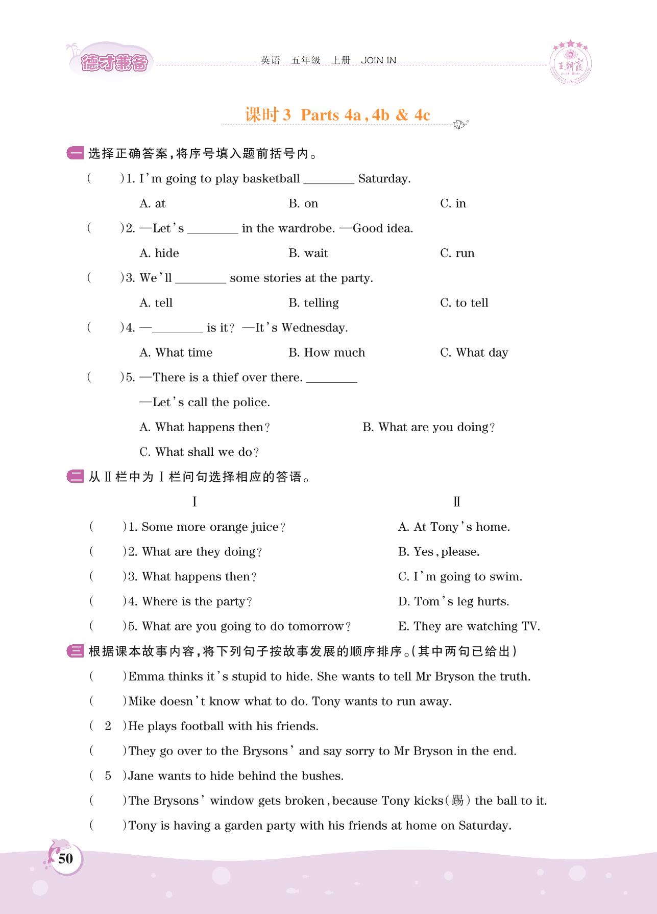 2021上册五年级英语剑桥版 Unit 5—课时3 Parts 4a,4b & 4c