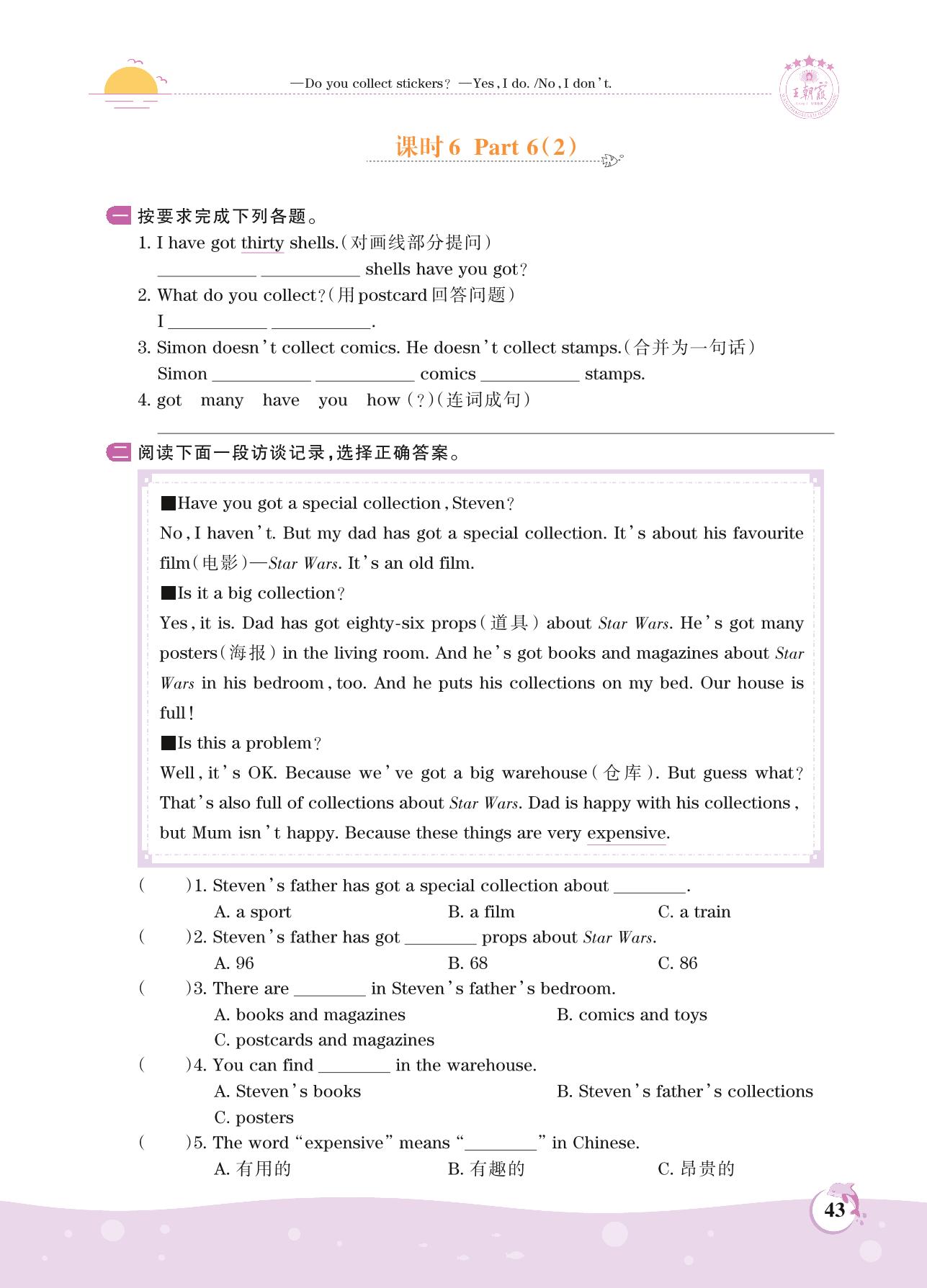 2021上册五年级英语剑桥版 Unit 4—课时6 Part 6(2)