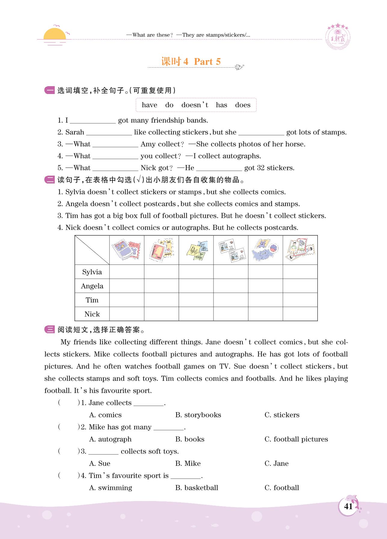 2021上册五年级英语剑桥版 Unit 4—课时4 Part 5