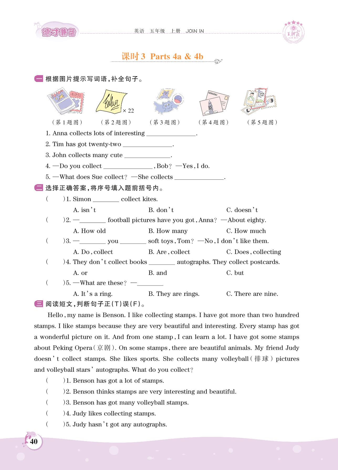 2021上册五年级英语剑桥版 Unit 4—课时3 Parts 4a & 4b