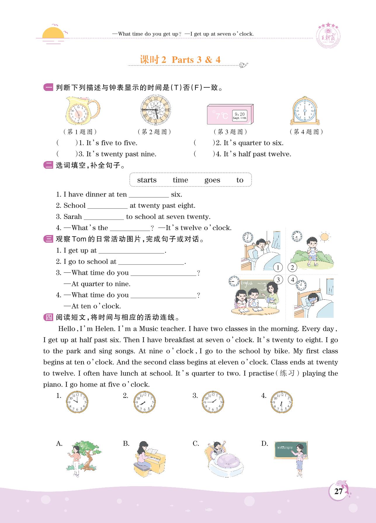 2021上册五年级英语剑桥版 Unit 3—课时2 Parts 3 & 4