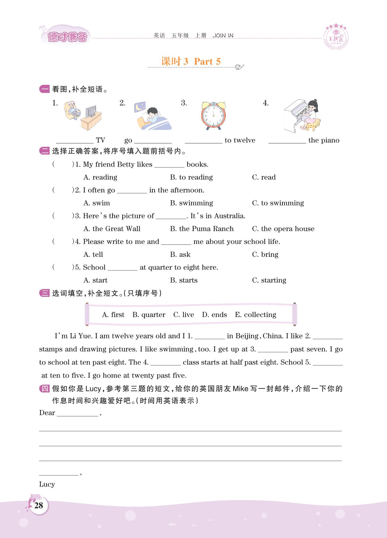 2021上册五年级英语剑桥版 Unit 3—课时3 Part 5