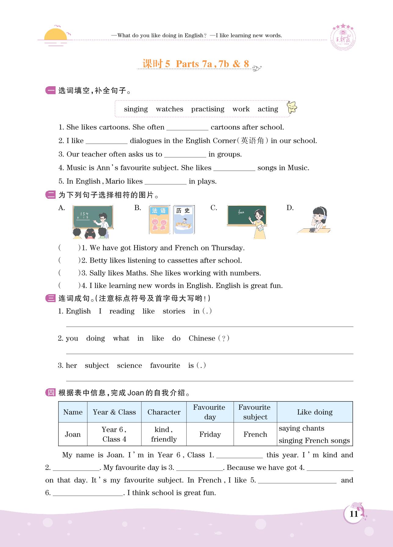 2021上册六年级英语剑桥版 Unit 1—课时 5 Parts 7a,7b & 8