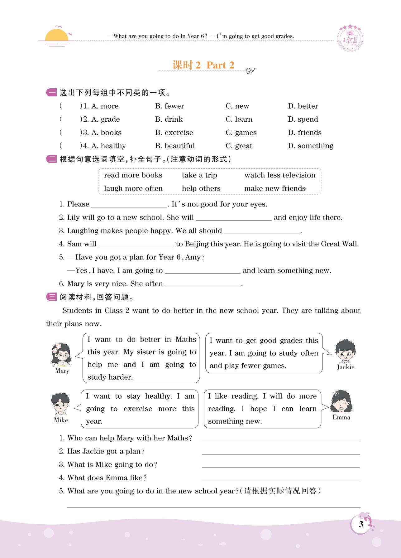 2021上册六年级英语剑桥版 Starter unit—课时 2 Part 2