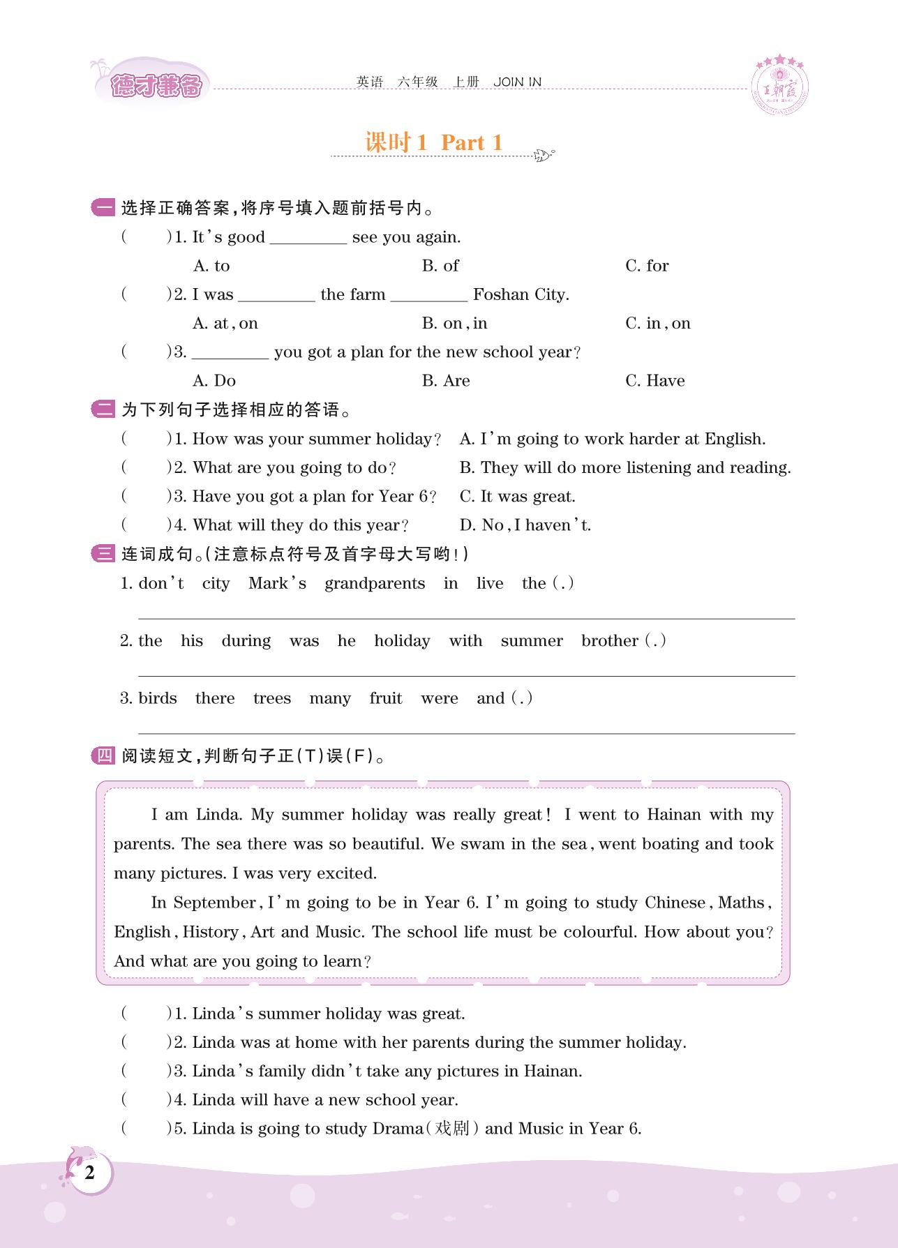 2021上册六年级英语剑桥版 Starter unit—课时 1 Part 1