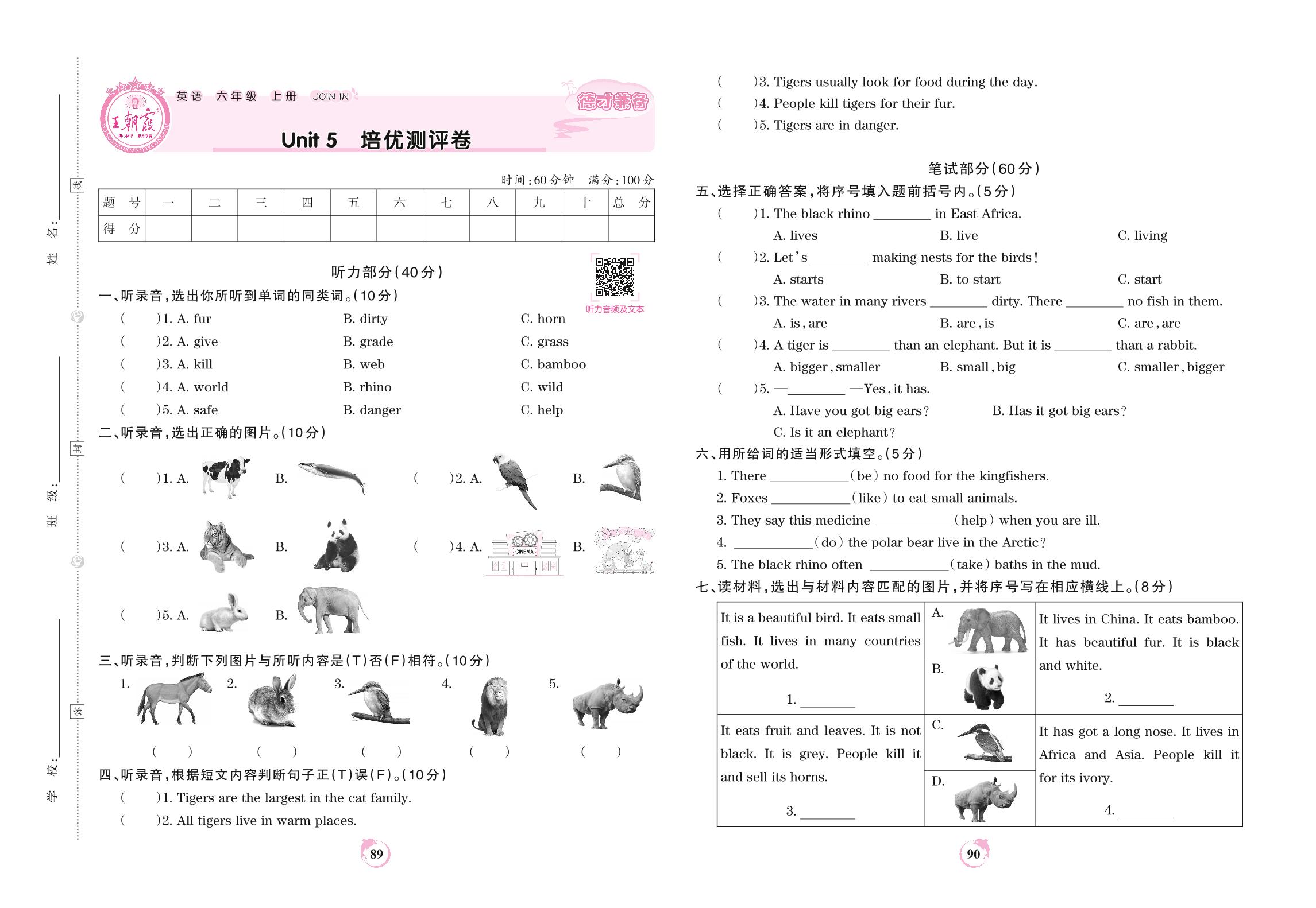 2021上册六年级英语剑桥版 Unit 5 培优测评卷