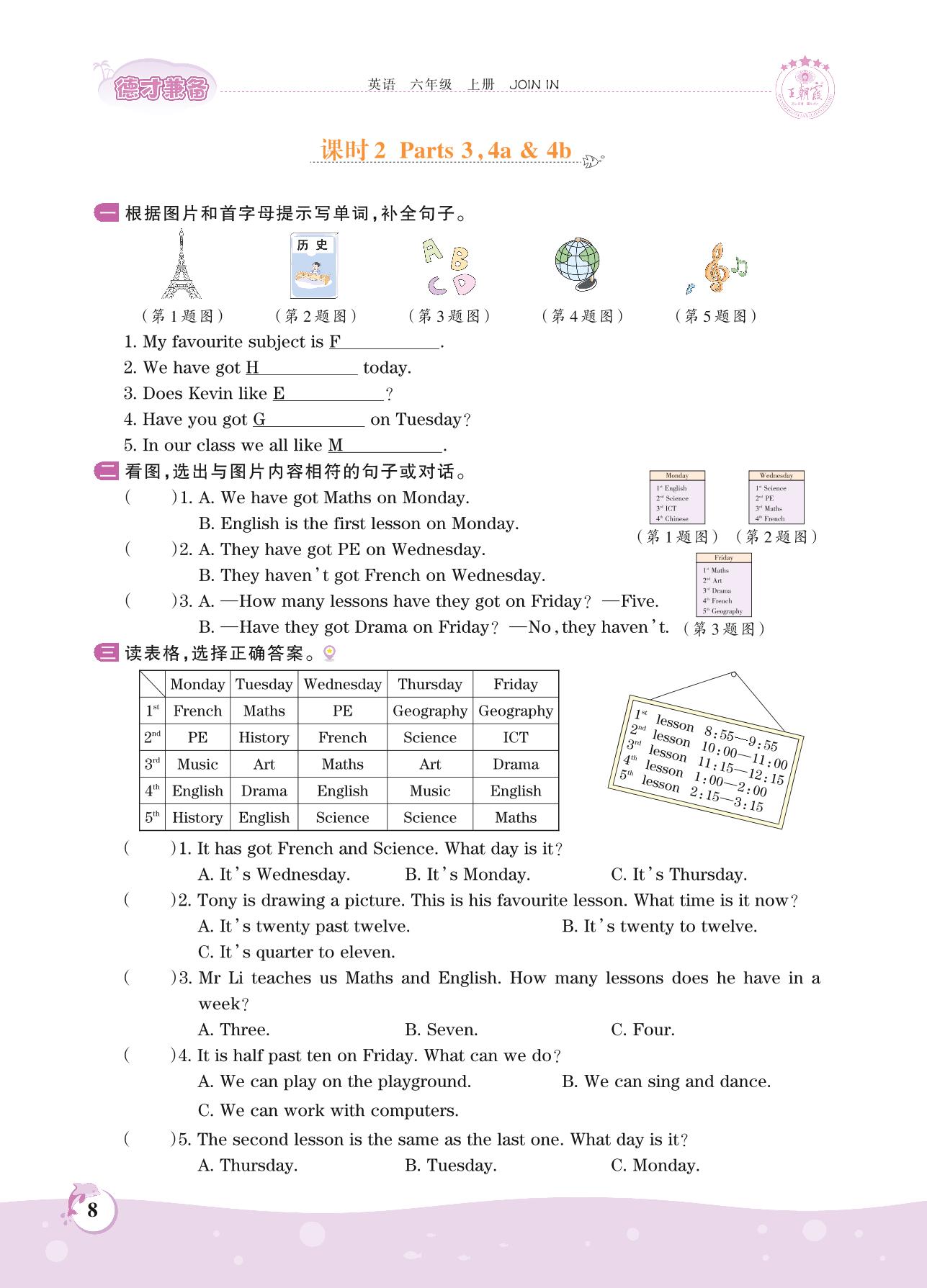2021上册六年级英语剑桥版 Unit 1—课时 2 Parts 3,4a & 4b