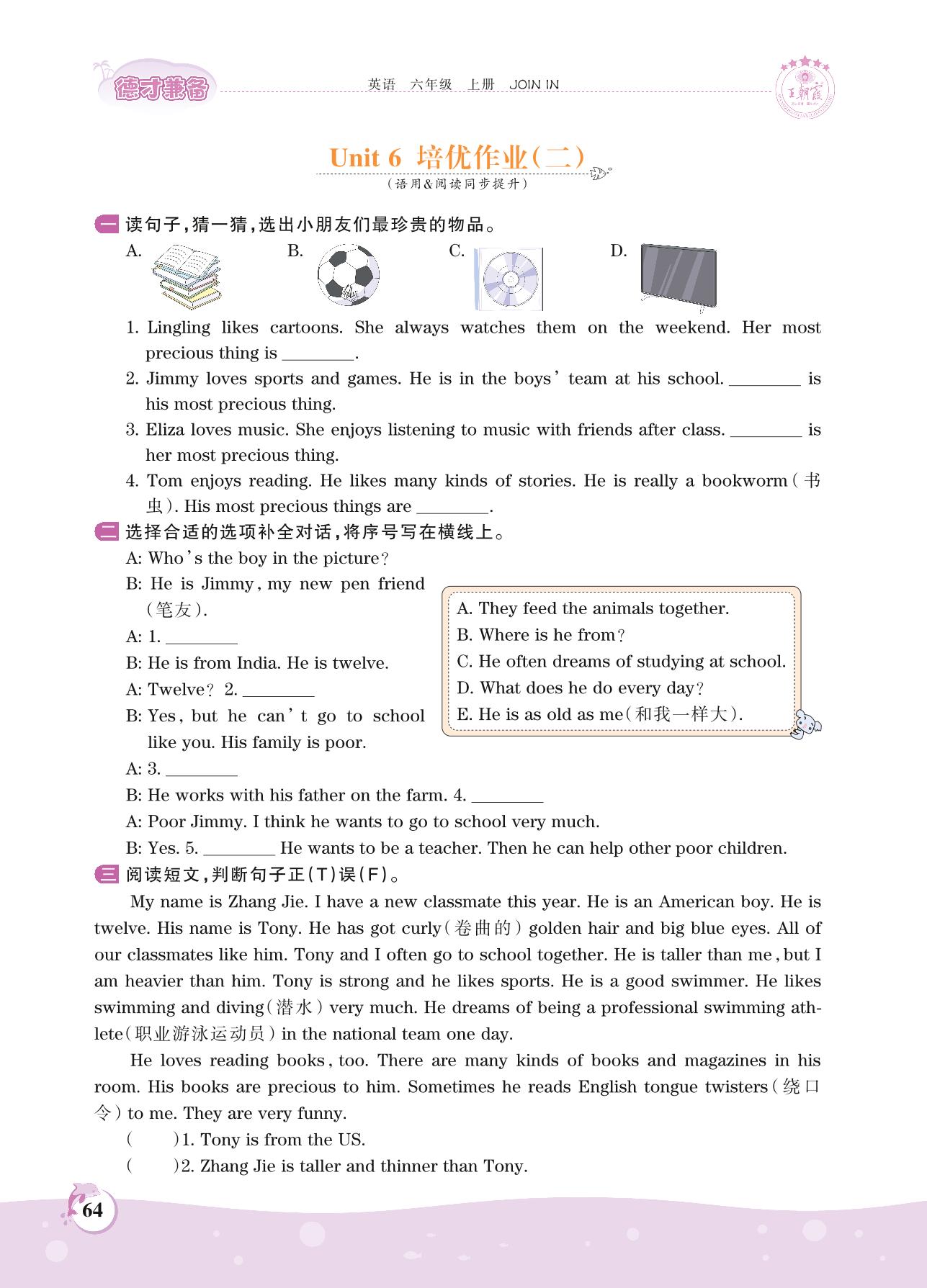 2021上册六年级英语剑桥版 Unit 6 培优作业(二)