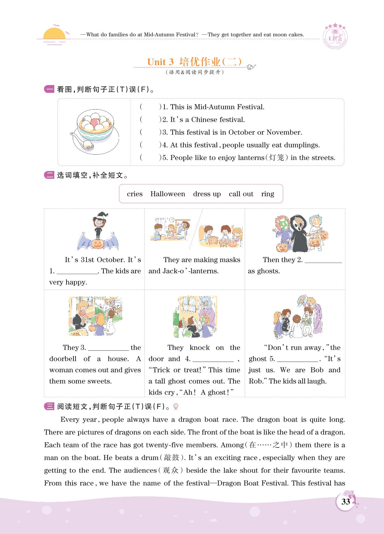 2021上册六年级英语剑桥版 Unit 3 培优作业(二)