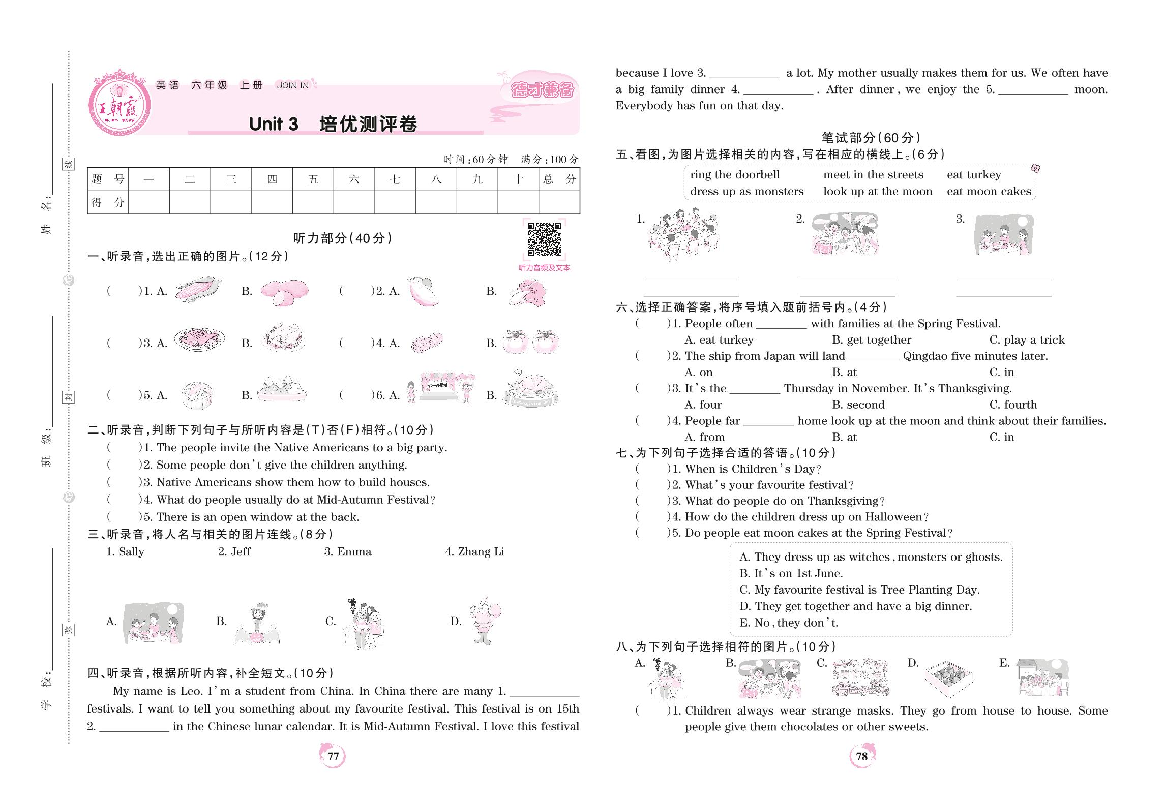 六年级英语剑桥版上册单元卷