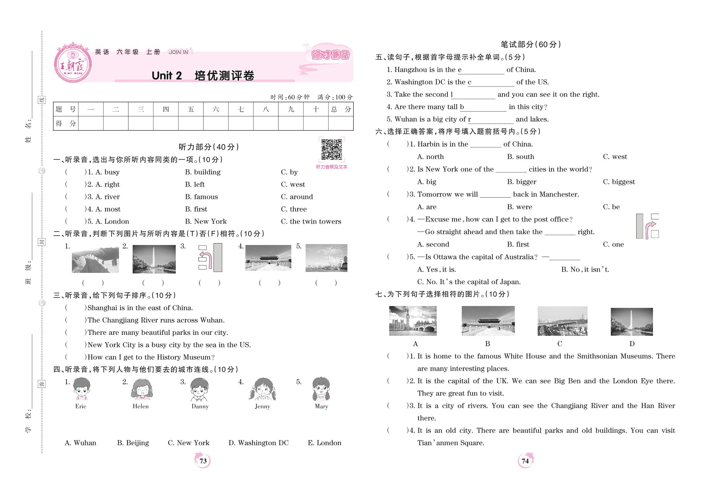 2021上册六年级英语剑桥版 Unit 2 培优测评卷