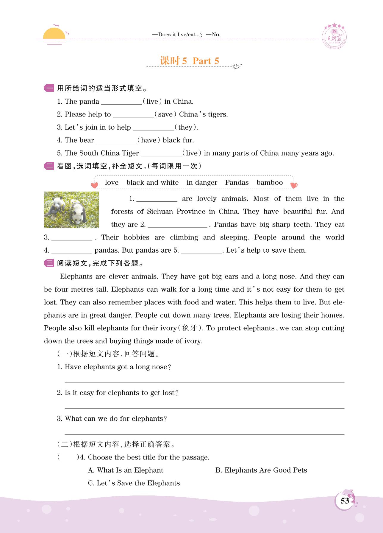 2021上册六年级英语剑桥版 Unit 5—课时 5 Part 5