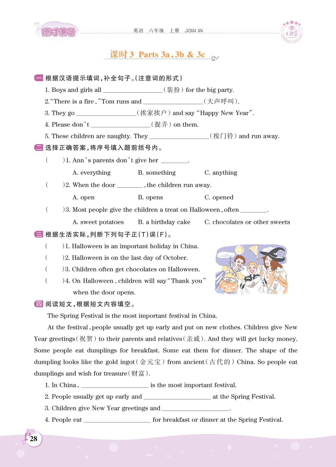 2021上册六年级英语剑桥版 Unit 3—课时 3 Parts 3a,3b & 3c