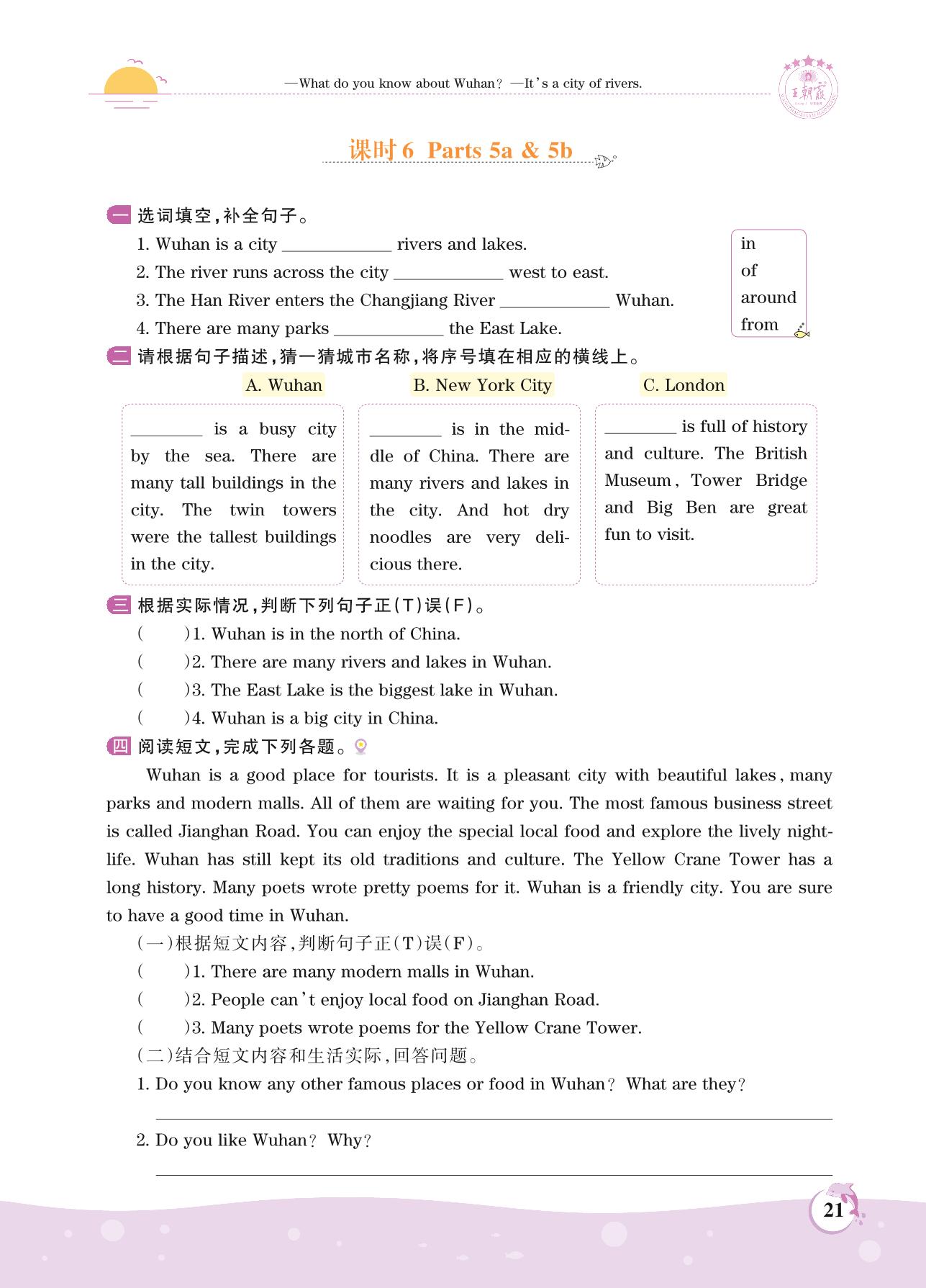 2021上册六年级英语剑桥版 Unit 2—课时 6 Parts 5a & 5b
