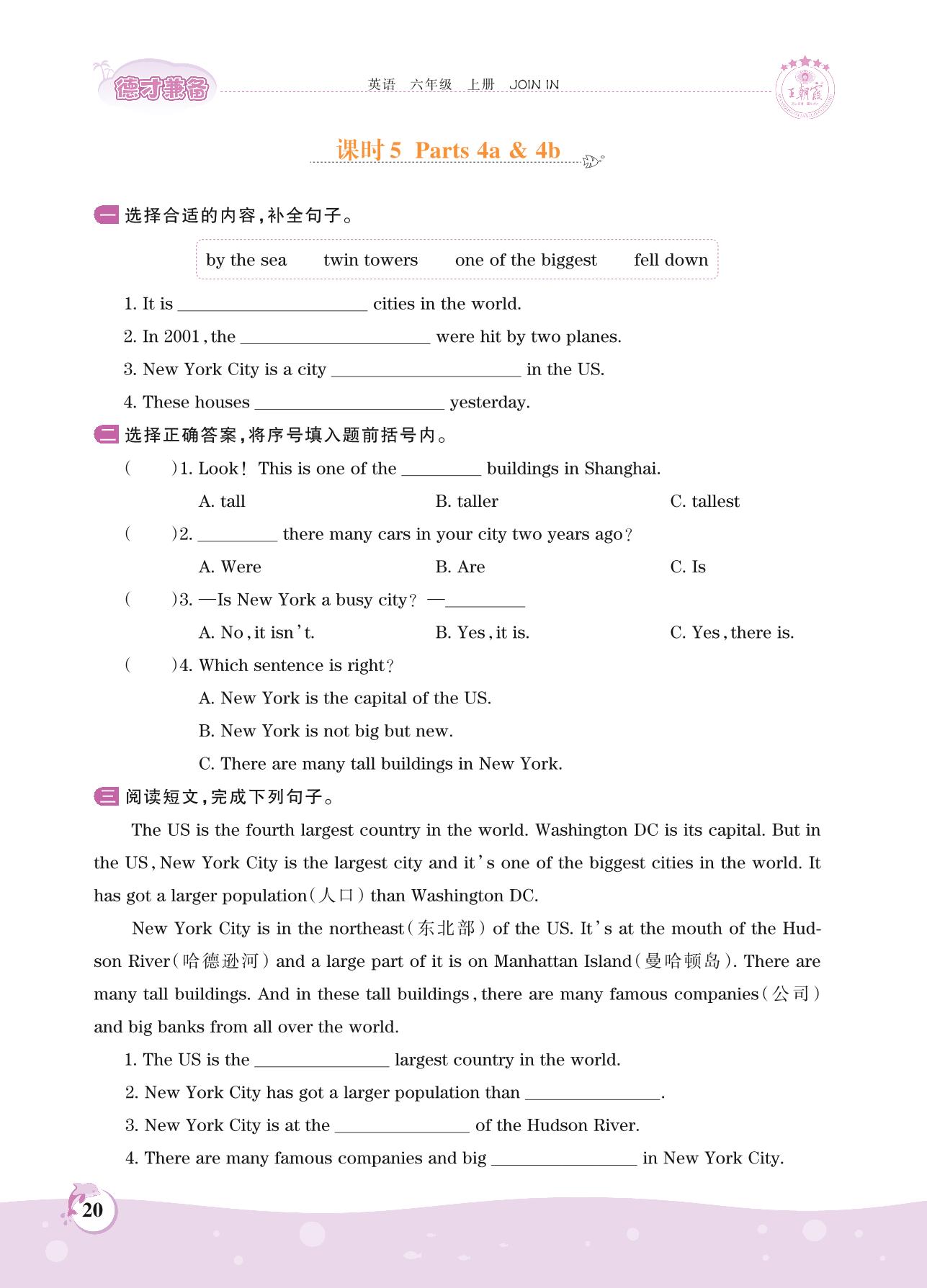 2021上册六年级英语剑桥版 Unit 2—课时 5 Parts 4a & 4b