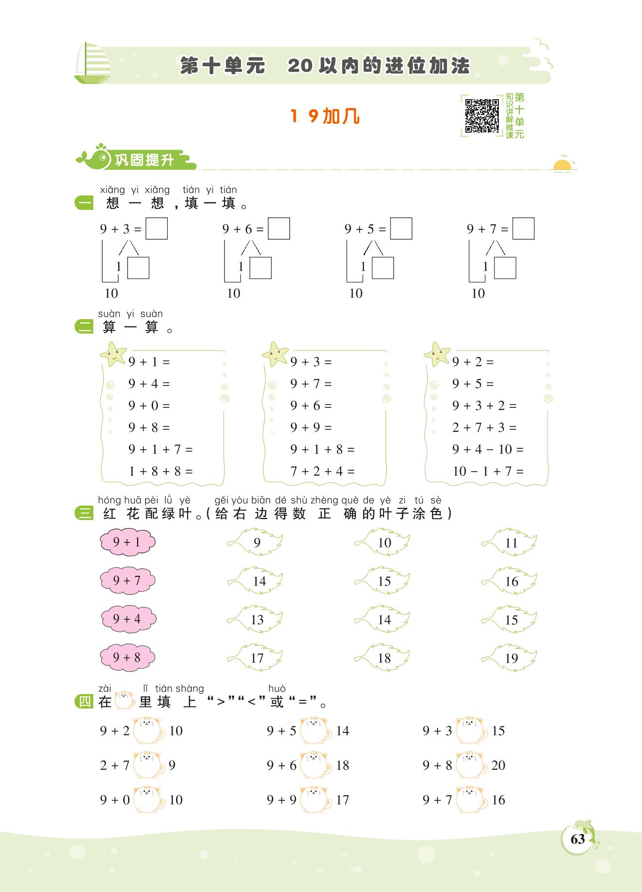 2021上册一年级数学苏教版 第十单元——1 9加几