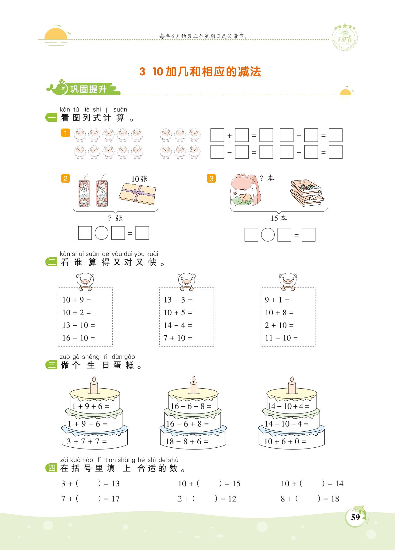 2021上册一年级数学苏教版 第九单元——3 10加几和相应的减法