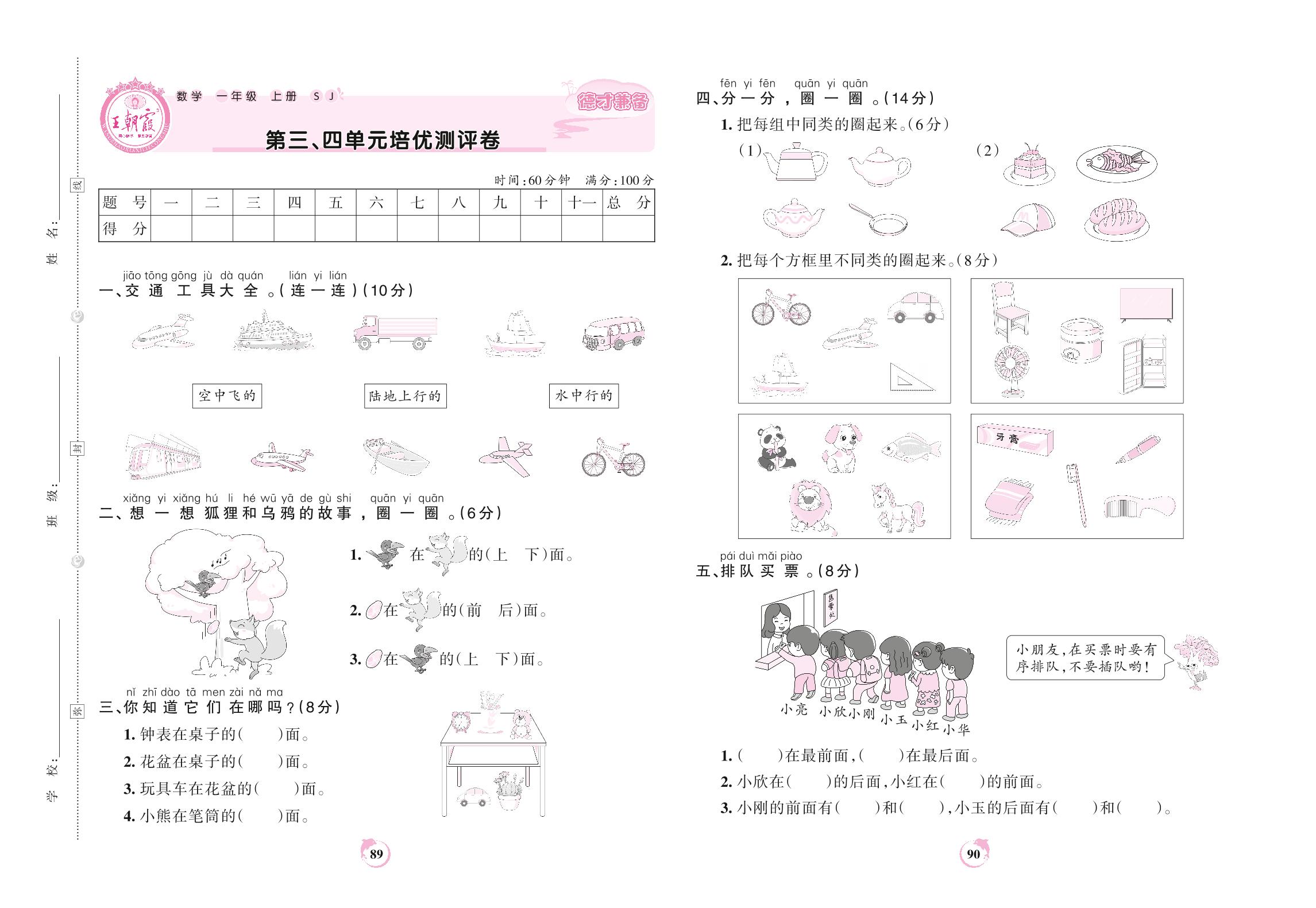 2021上册一年级数学苏教版 第三、四单元培优测评卷