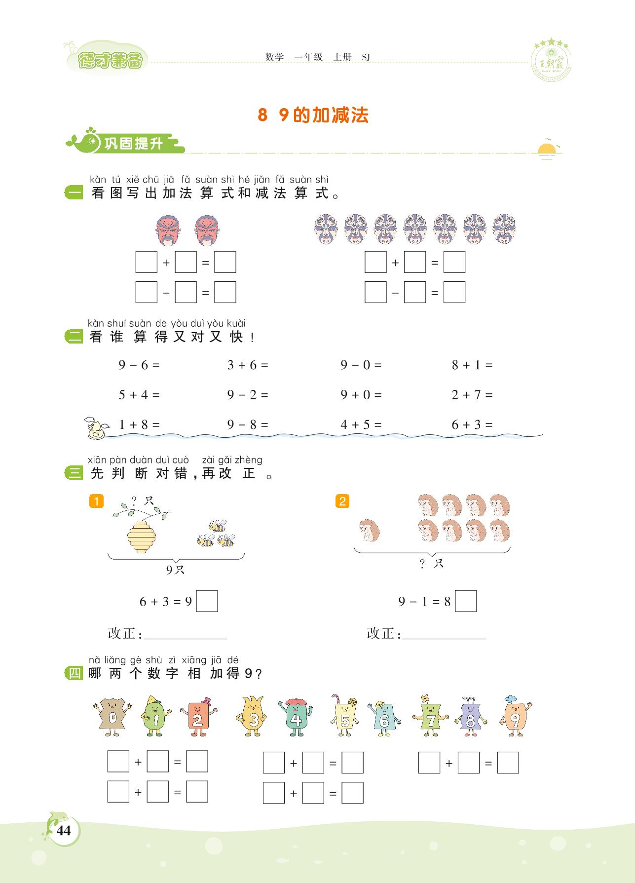 2021上册一年级数学苏教版 第八单元——8 9的加减法