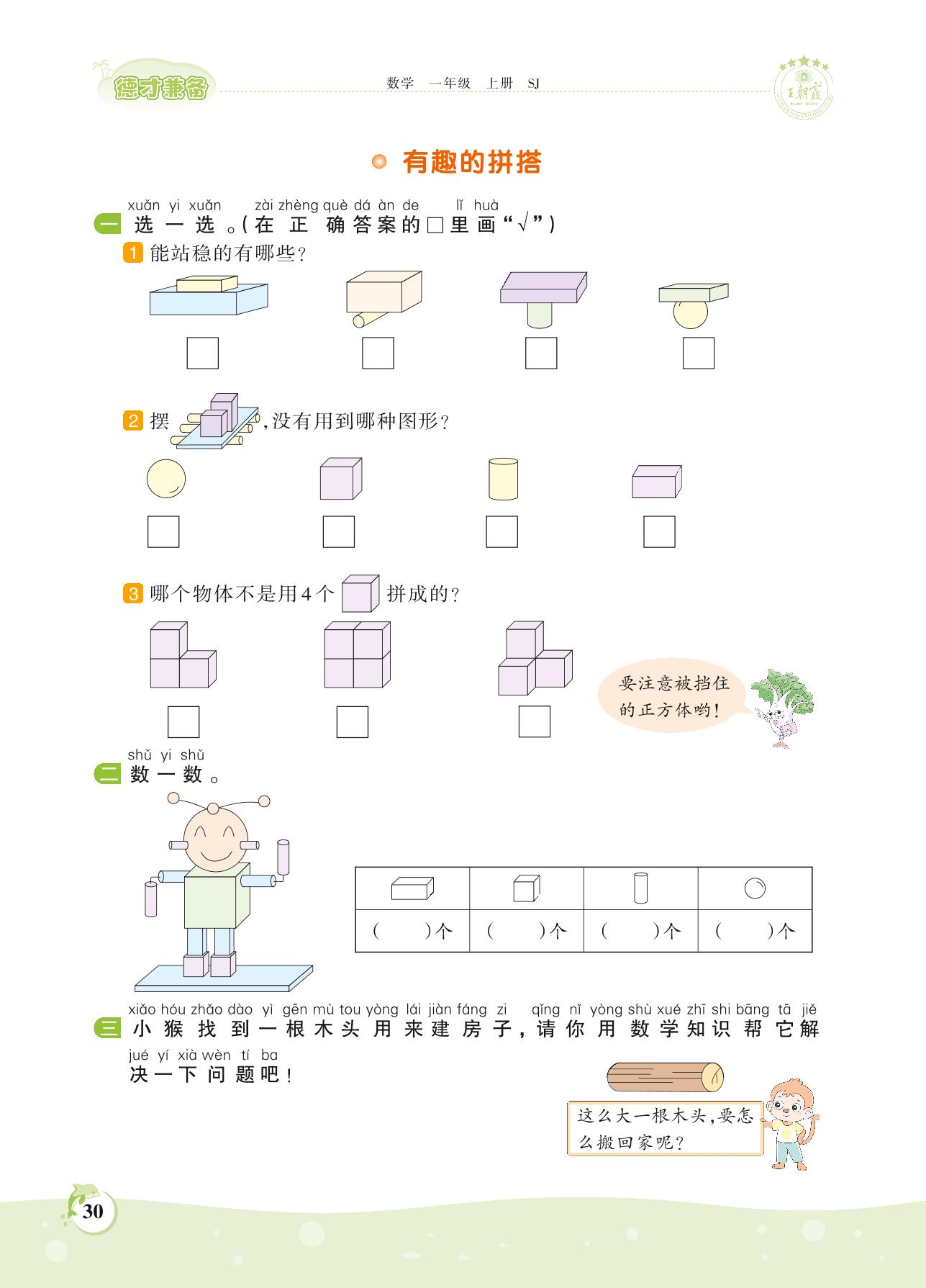2021上册一年级数学苏教版 第六单元——有趣的拼搭