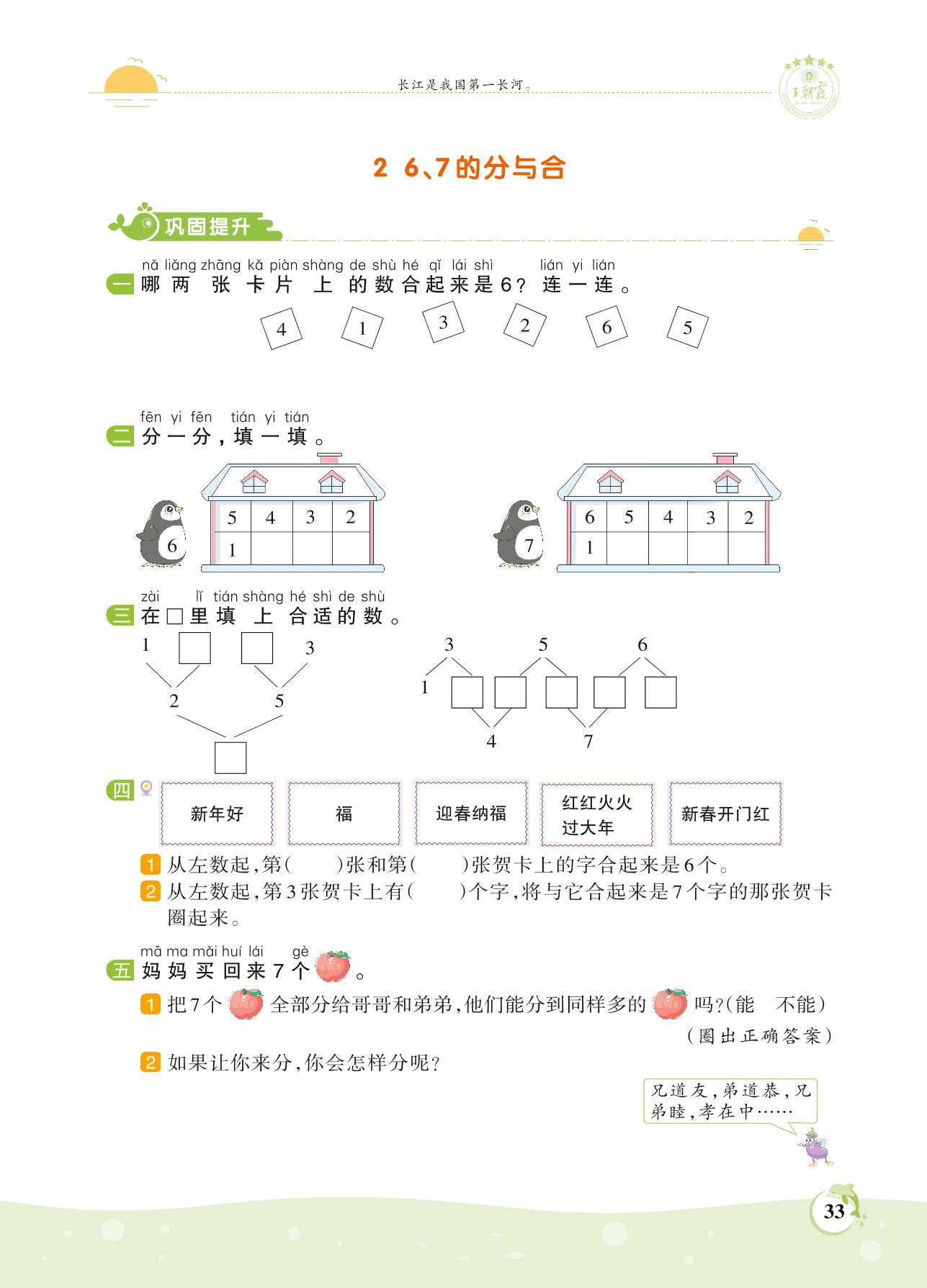 2021上册一年级数学苏教版 第七单元——2 6、7的分与合