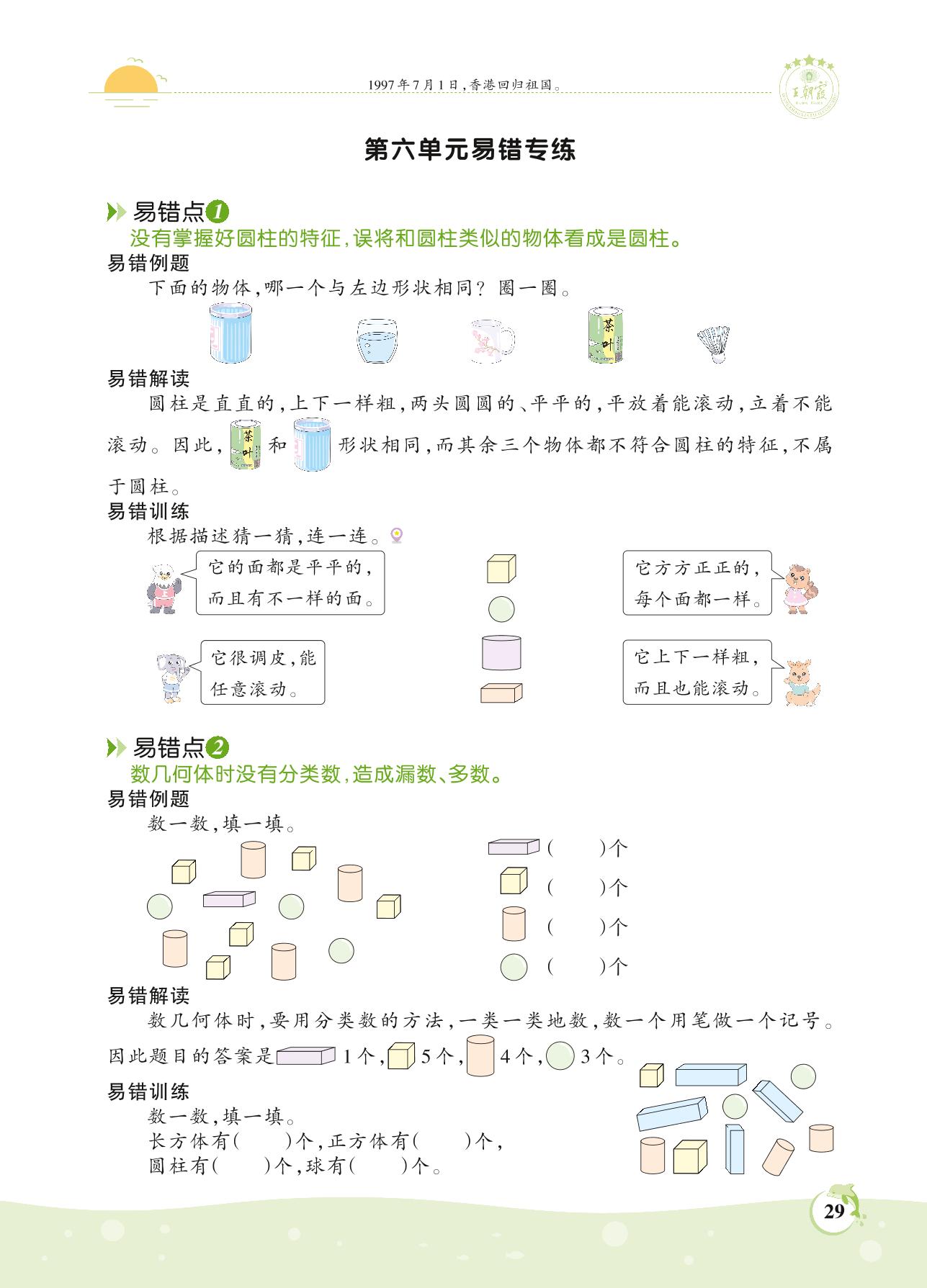2021上册一年级数学苏教版 第六单元——第六单元易错专练