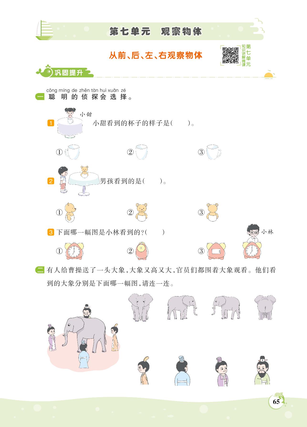 2021上册二年级数学苏教版 第七单元——从前、后、左、右观察物体