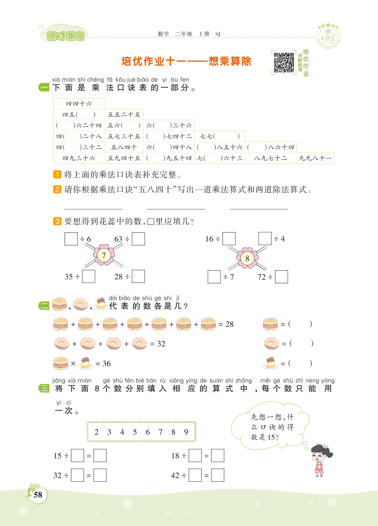 2021上册二年级数学苏教版 第六单元——培优作业十一 想乘算除