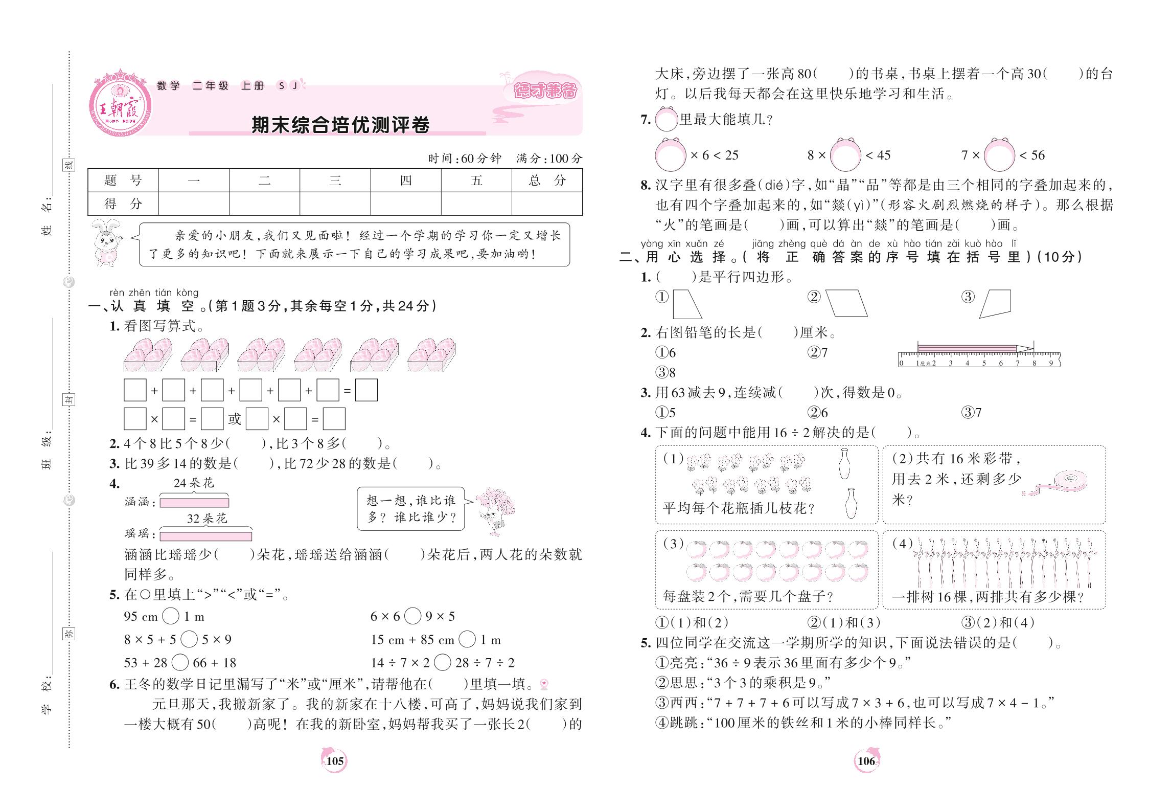 2021上册二年级数学苏教版 期末综合培优测评卷