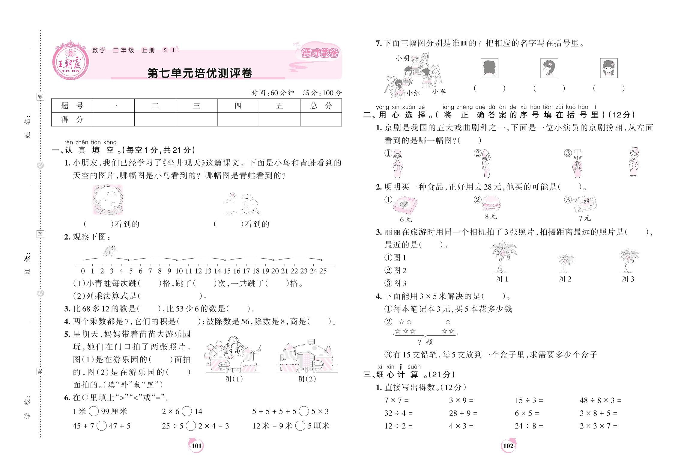 2021上册二年级数学苏教版 第七单元培优测评卷