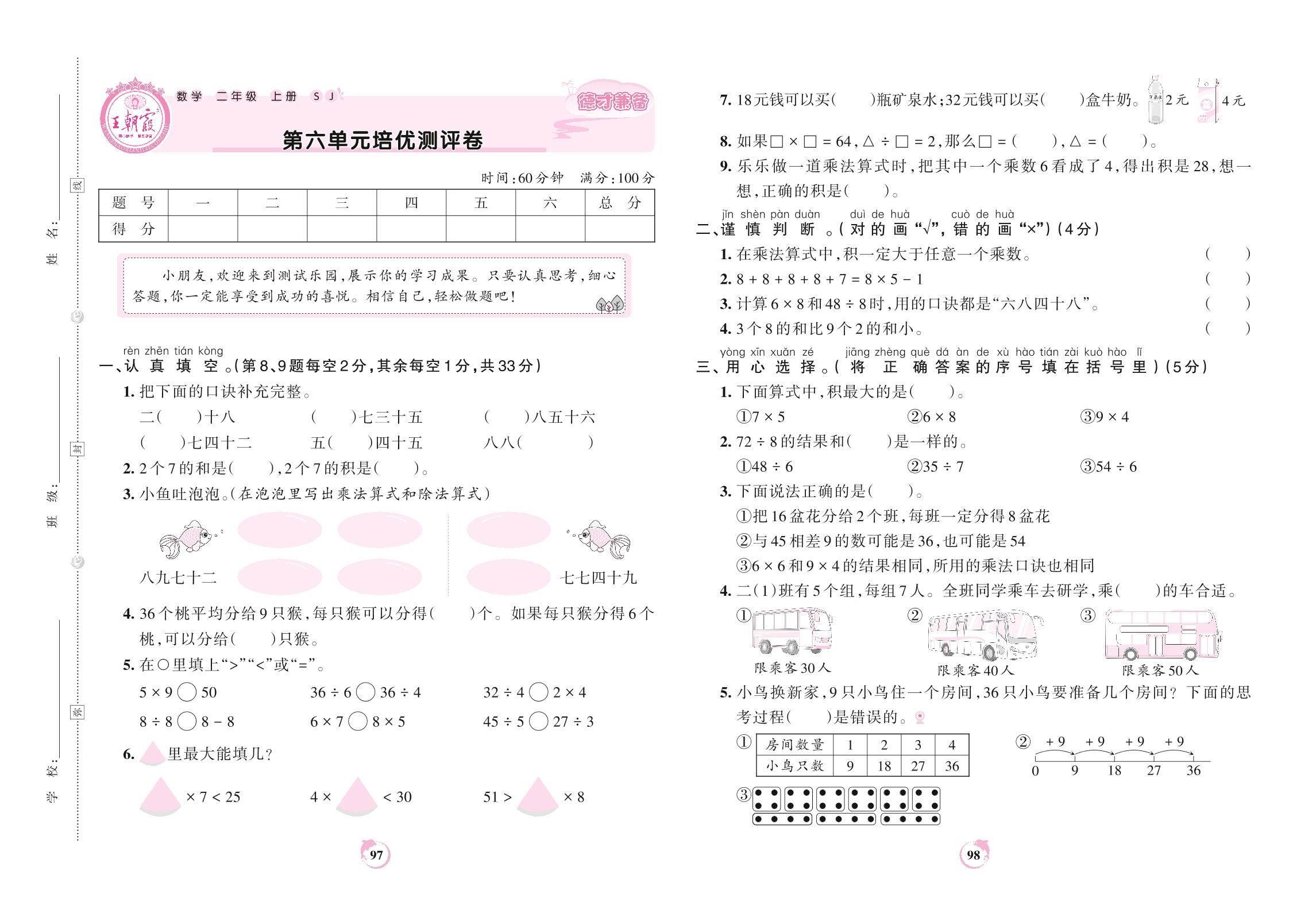 2021上册二年级数学苏教版 第六单元培优测评卷