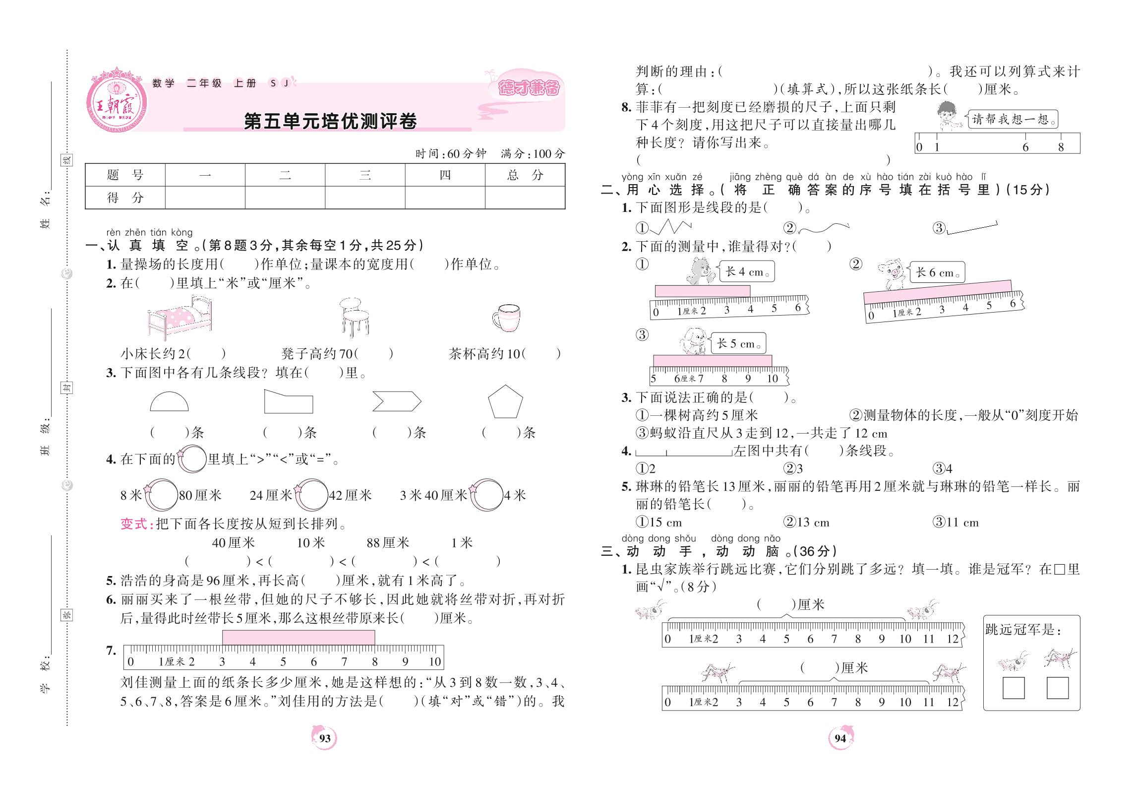 2021上册二年级数学苏教版 第五单元培优测评卷