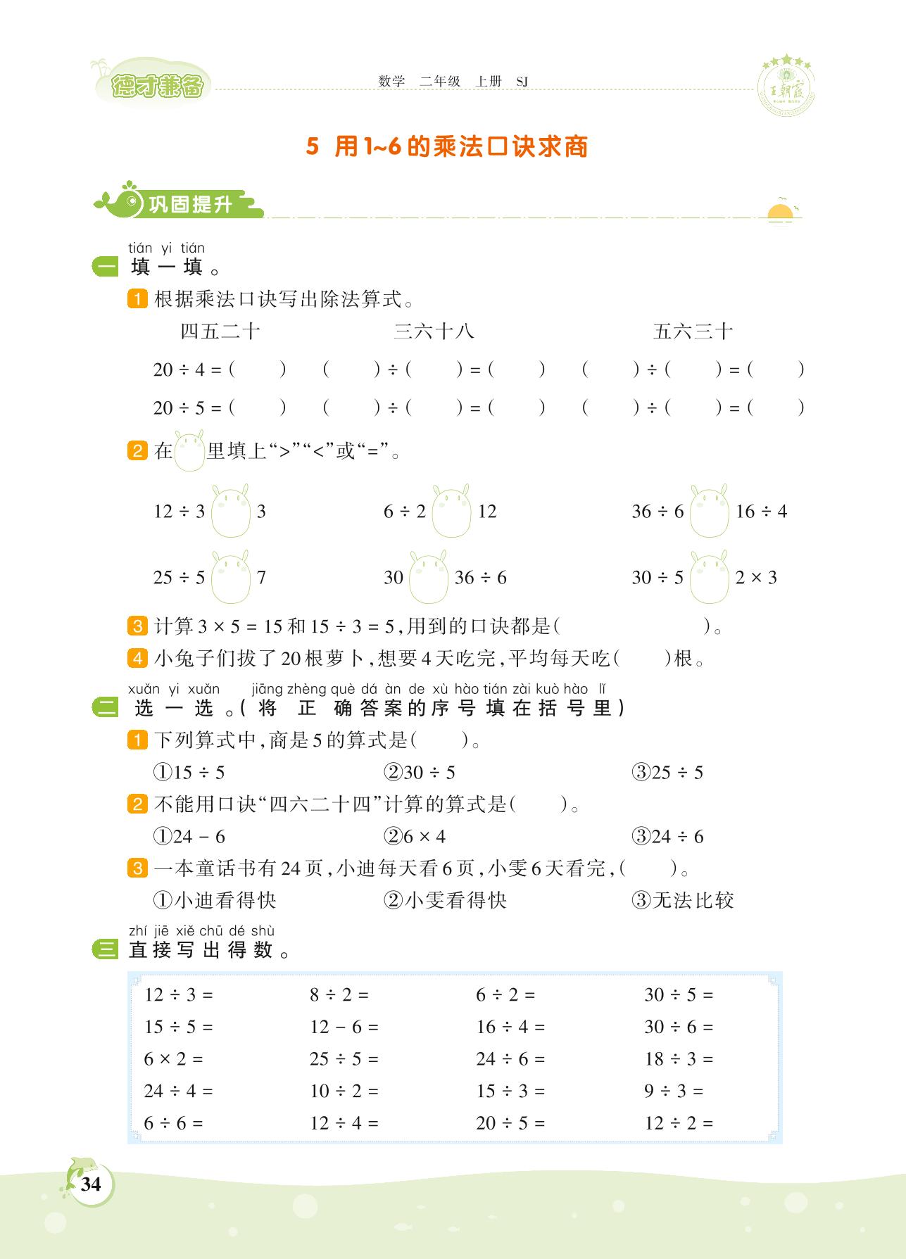 2021上册二年级数学苏教版 第四单元——5 用1~6的乘法口诀求商