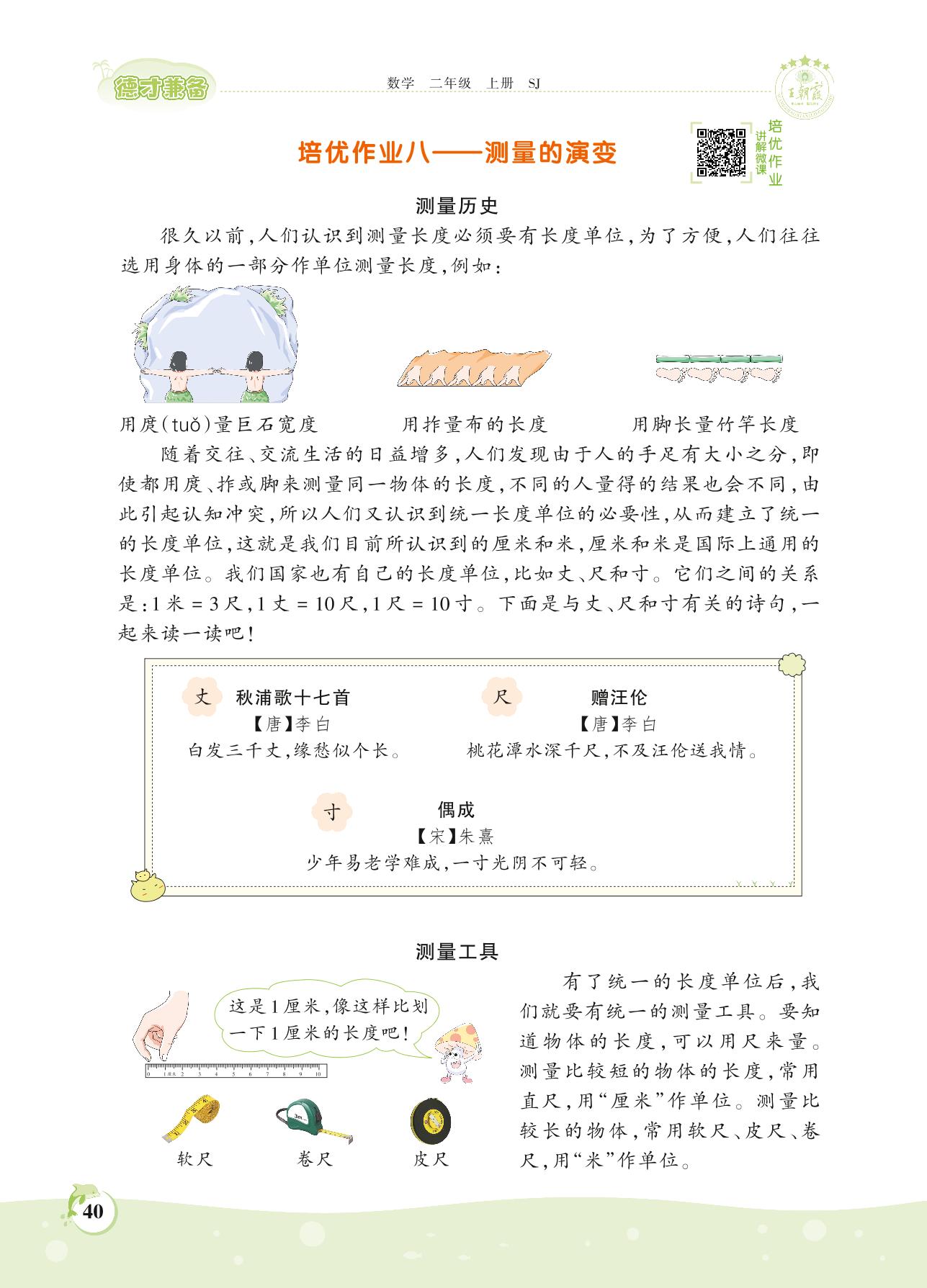 2021上册二年级数学苏教版 第五单元——培优作业八 测量的演变