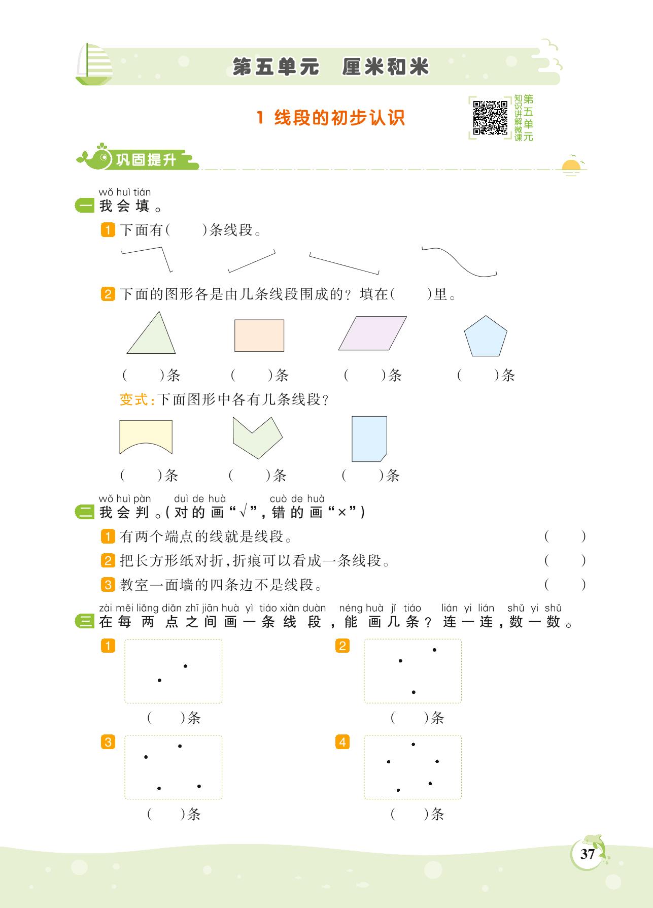 2021上册二年级数学苏教版 第五单元——1 线段的初步认识