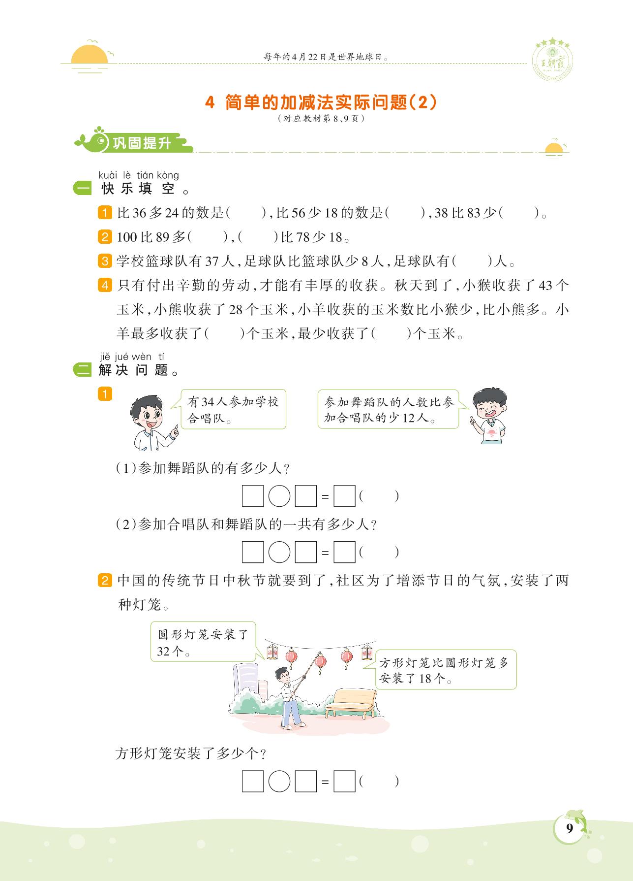 2021上册二年级数学苏教版 第一单元——4 简单的加减法实际问题(2)