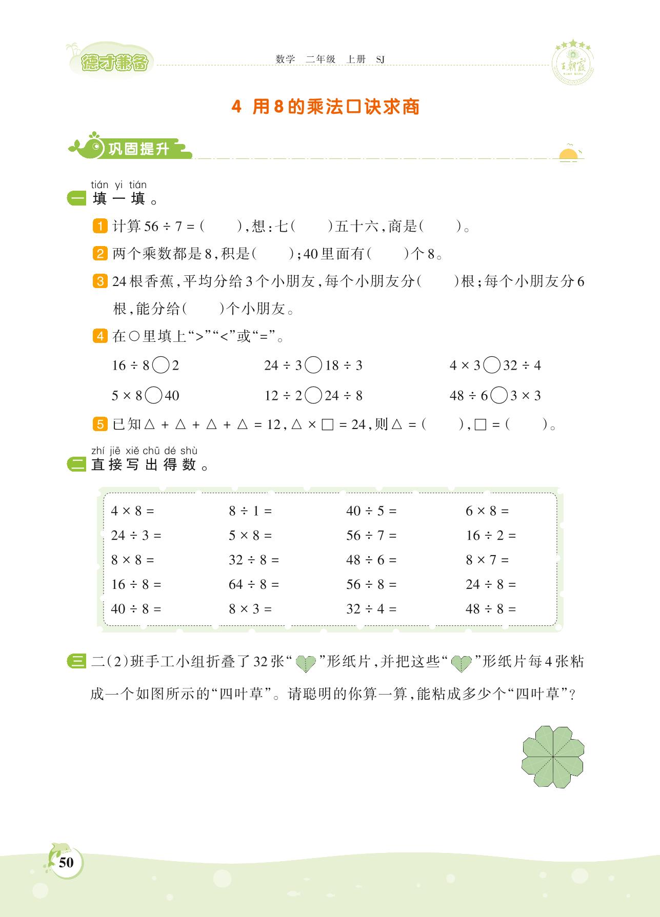 2021上册二年级数学苏教版 第六单元——4 用8的乘法口诀求商