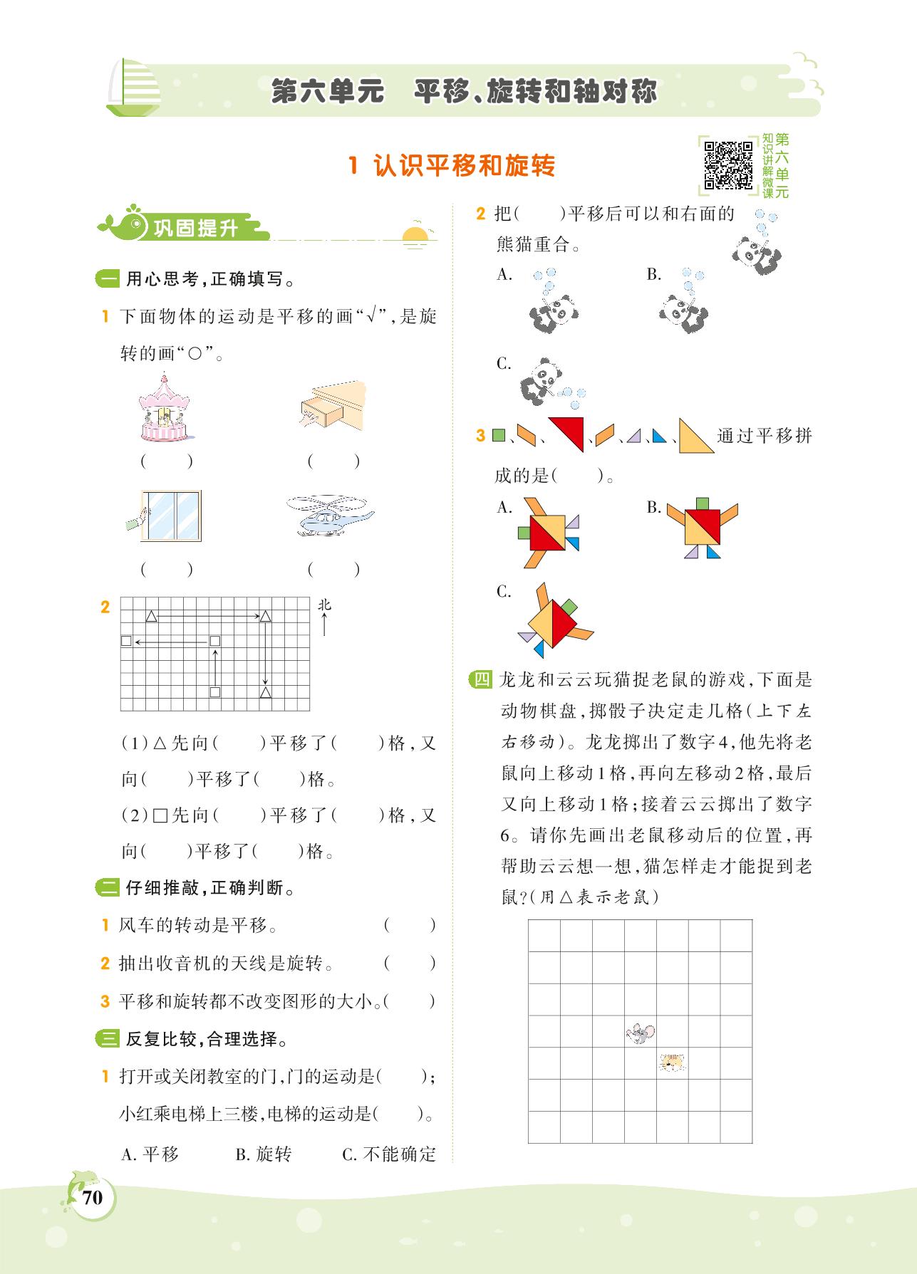 2021上册三年级数学苏教版 第六单元——1 认识平移和旋转