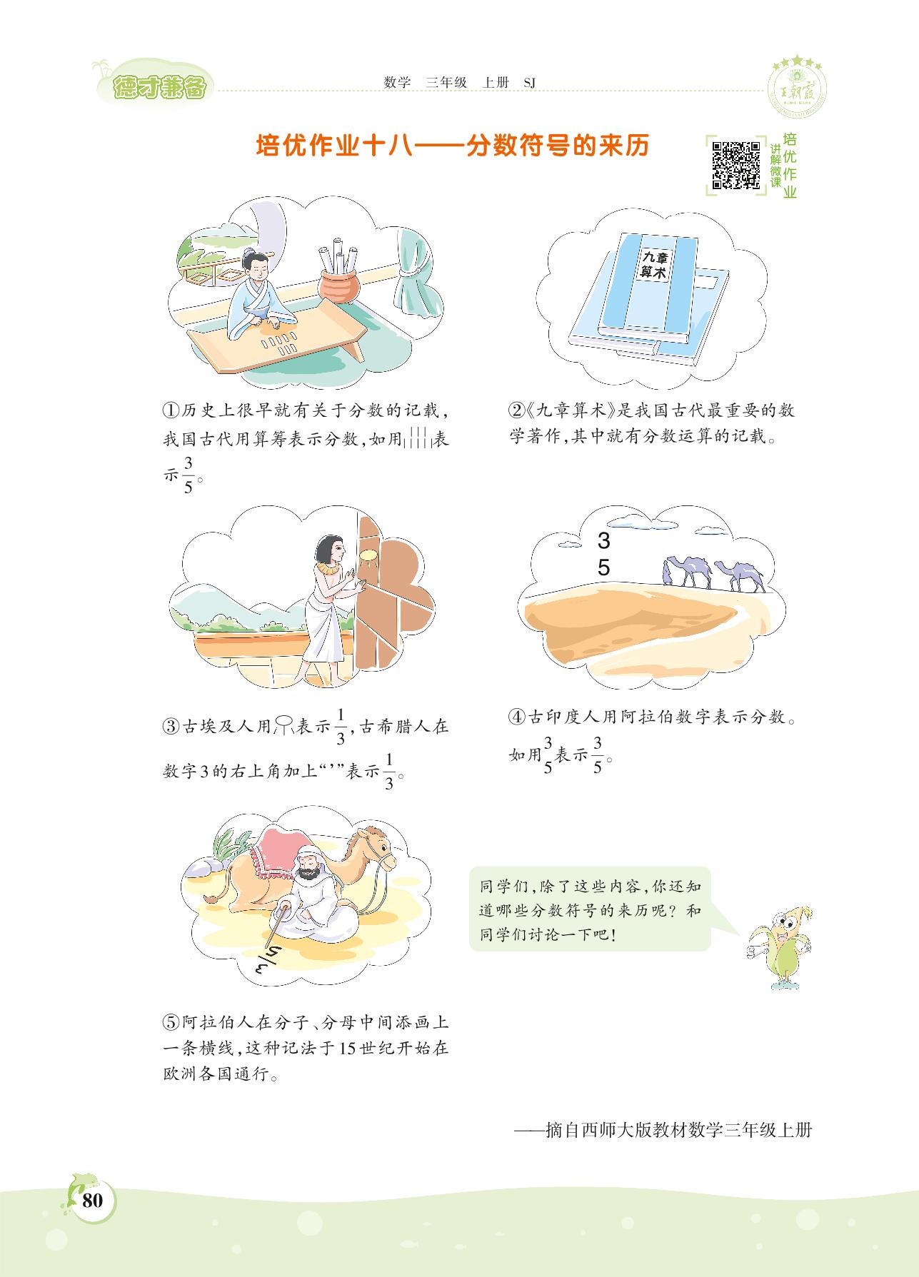 2021上册三年级数学苏教版 第七单元——培优作业十八 分数符号的来历