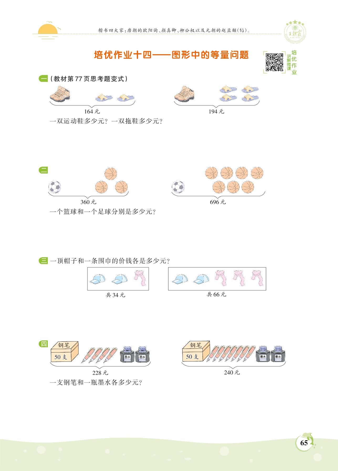 2021上册三年级数学苏教版 第五单元——培优作业十四 图形中的等量问题