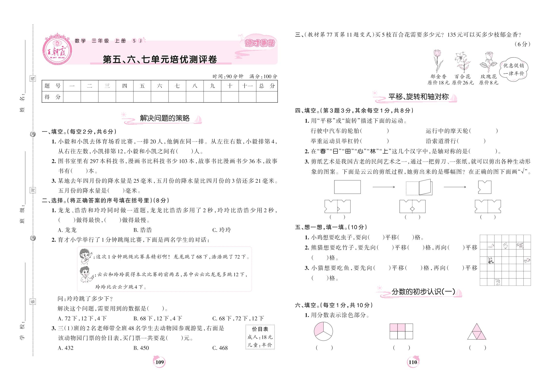 2021上册三年级数学苏教版 第五、六、七单元培优测评卷