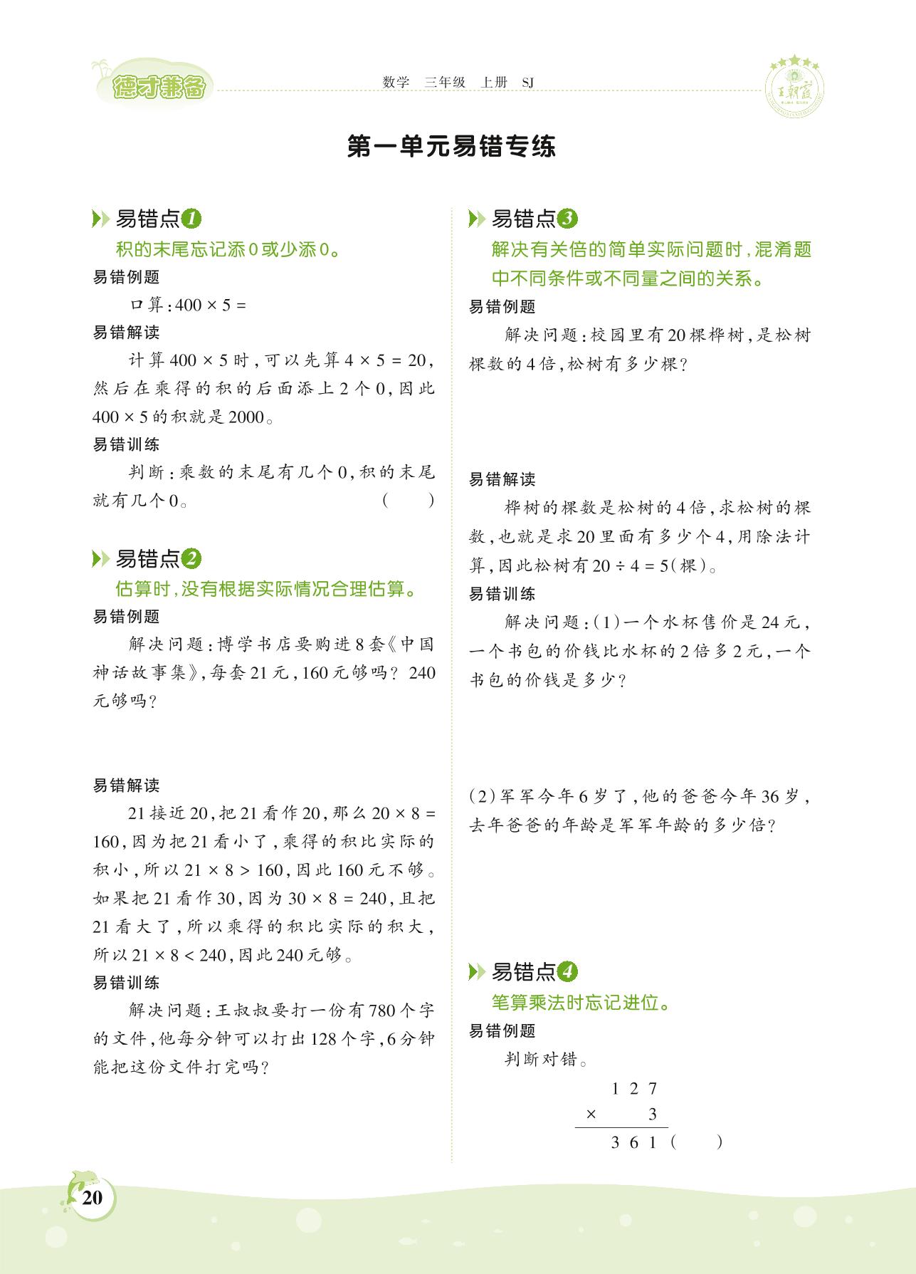 2021上册三年级数学苏教版 第一单元易错专练
