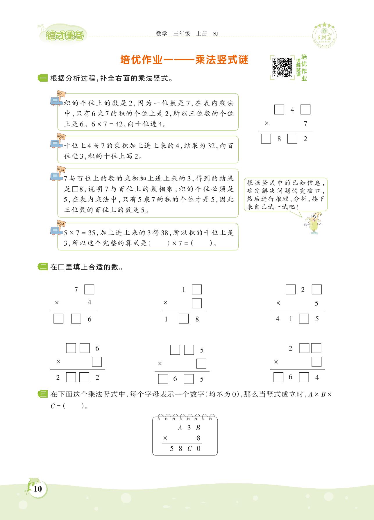 2021上册三年级数学苏教版 第一单元——培优作业一 乘法竖式谜